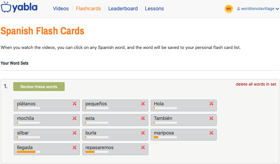 Un bon truc aussi sont les « sets » qui regroupent les mots cliquĂ©s en paquets sĂ©parĂ©s. L’algorithme du regroupement des mots n’est pas en lien avec les vidĂ©os sauf pour l’entrĂ©e. Ils sont proposĂ©s alĂ©atoirement et non pas par vidĂ©o contrairement Ă « vocabulary ».
