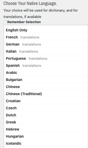 Le « flashcard » (accessible sur la page d’accueil, barre de menu) permet de stocker et de retravailler les mots difficiles ou mal connus. Rien de comparable avec certains concurrents pointus, mais un bel outil pour travailler et mĂ©moriser le vocabulaire.