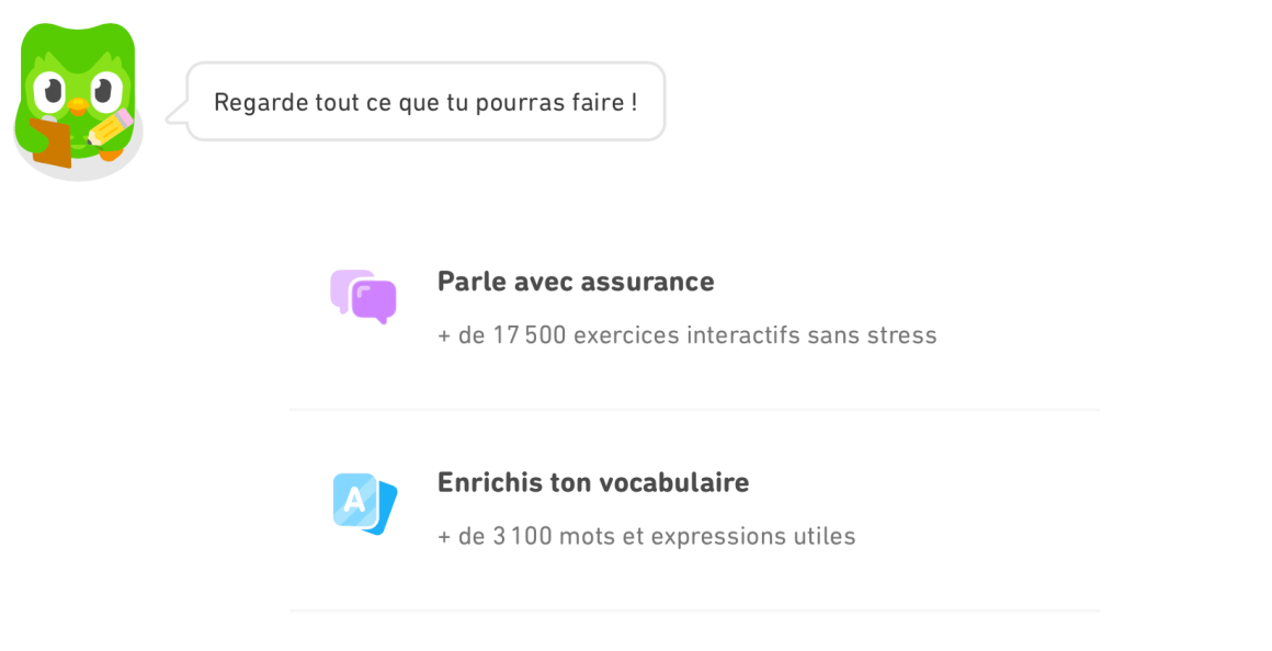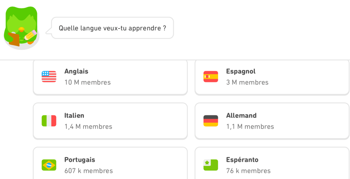 Duolinguo est simple, sympathique et gratuit. On en a donc pour son argent… Comme pour la plupart des applis « flashcard », il est surtout utile pour accumuler du vocabulaire, mais limité pour apprendre vraiment une langue (par exemple, les applications qui font usage de vidéos pour l’apprentissage permettent d’aller plus loin).
