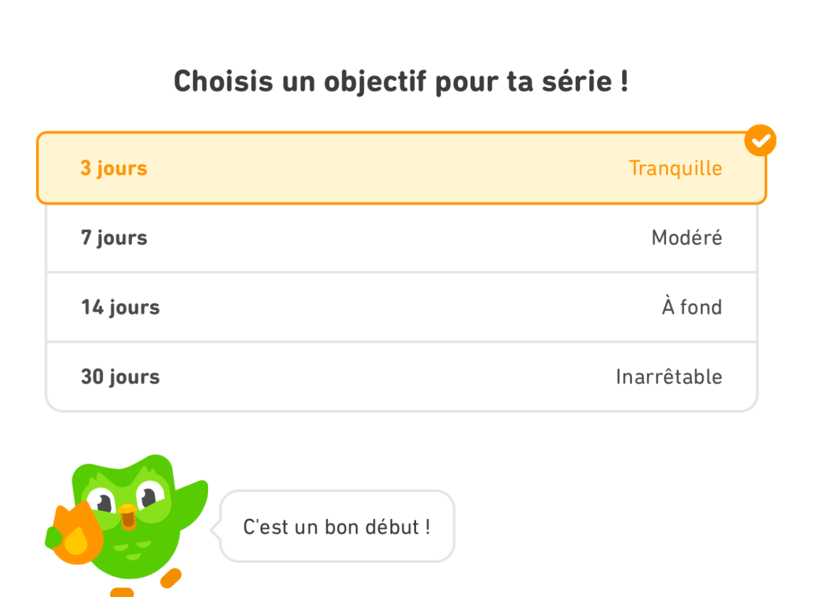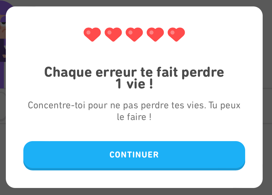 Les streaks ou séries sont des éléments indispensables pour la mémorisation à long terme. Les coeurs, points de vie semble un brin stressant et plus adaptés aux jeux vidéos. Mais la monétisation est en marche forcée (voir plus loin) et permet d’effacer les frustrations de la version gratuite (c’est fait pour) plutôt que d’apporter de vrais plus pédagogiques. C’est le marketing jeu vidéo…