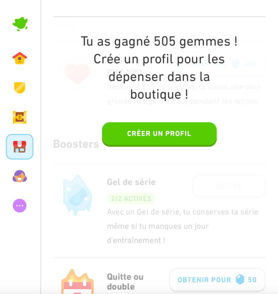 Duolingo est revenu à sa cible première, les enfants, en éliminant les fonctions réseaux et rencontres pas très compatibles en raison des risques. Son store en est le reflet.