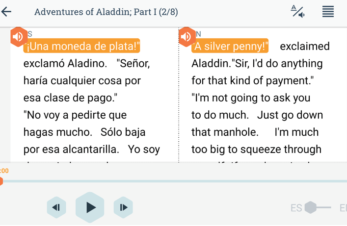 Beelingua est une application toute simple (mais non rĂ©volutionnaire, c’est le principe du livre audio) qui propose des textes en tandem de langue native et traduction. Cette version digitale pour mobile est un excellent outil pour se distraire en pratiquant une langue Ă©trangĂšre et ajoute merveilleusement l’audio par rapport au modĂšle livre papier.
