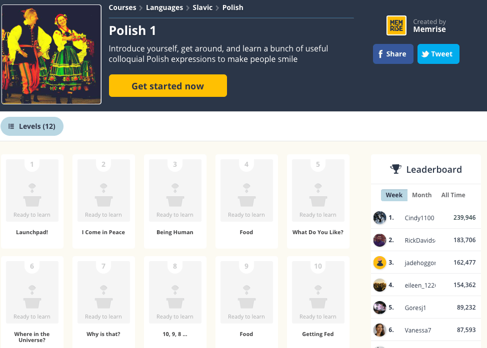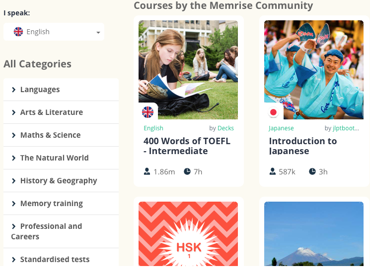 Une richesse de Memrise est la diversitĂ© des « decks » crĂ©es par les internautes. C’est donc un site participatif ouvert sur le monde avec des thĂ©matiques originales qui tranchent avec le classicisme de beaucoup d’autres sites.
