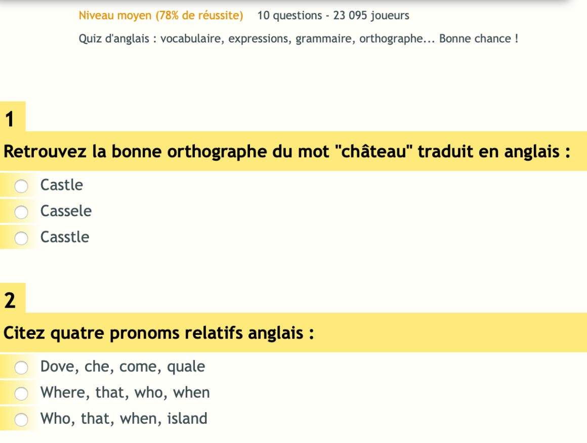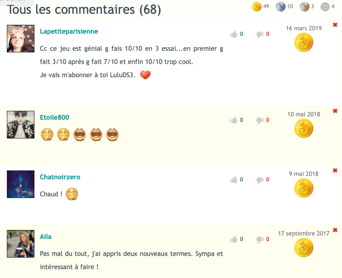 L’Ćuvre de bĂ©nĂ©voles, on trouve de tout et en vrac ce qui donne un caractĂšre sympathique et variĂ© au site. Vivants, les commentaires Ă©gayent les exercices et vous donnent le sentiment d’une communautĂ©. Et on peut participer en crĂ©ant des quizz… Motivant.
