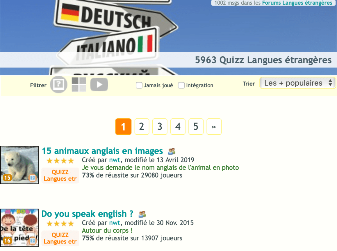 Des milliers de quizz pour les langues Ă©trangĂšres. Sympa la compil’ et le plein d’exercices pour tous les Ăąges et niveaux.