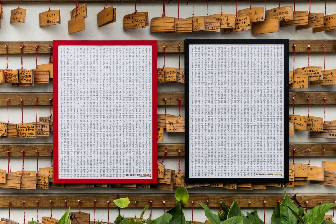 Pas de déclinaison en chinois, mais l’achat d’un poster de 1000 caractères de base à afficher sur un mur vous permet de surligner les connus et de les réviser de manière impromptue en passant devant. On visualise aussi son avancée en un coup d’œil!