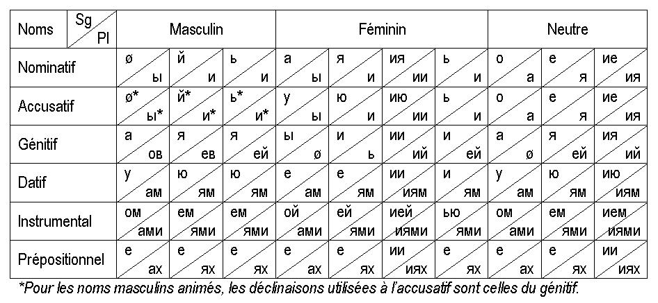 Déclinaisons russes