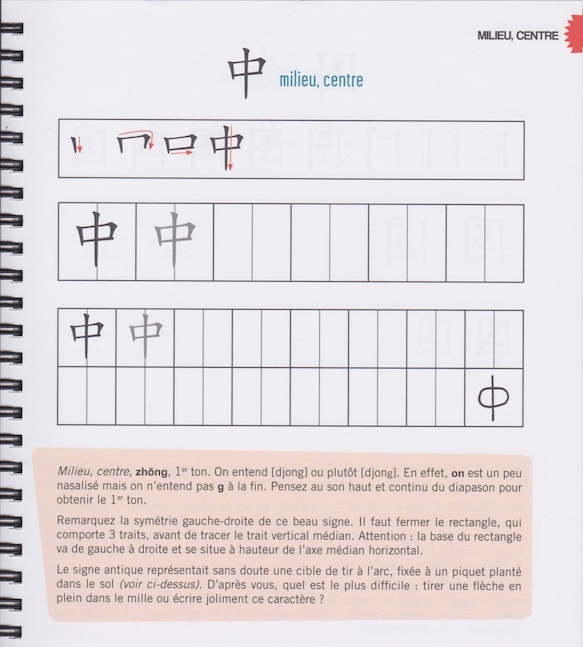 Le cahier d’Ă©critures du chinois (les bases) est, contrairement Ă son nom qui ne l’indique pas, un superbe outil pour dĂ©couvrir et dĂ©marrer le mandarin. On peut le critiquer par son faible nombre de caractĂšres (100) Ă apprendre, mais l’intĂ©rĂȘt majeur de ce produit est la pĂ©dagogie sous-jacente qui est une clĂ© de la rĂ©ussite dans cette langue rĂ©putĂ©e difficile.