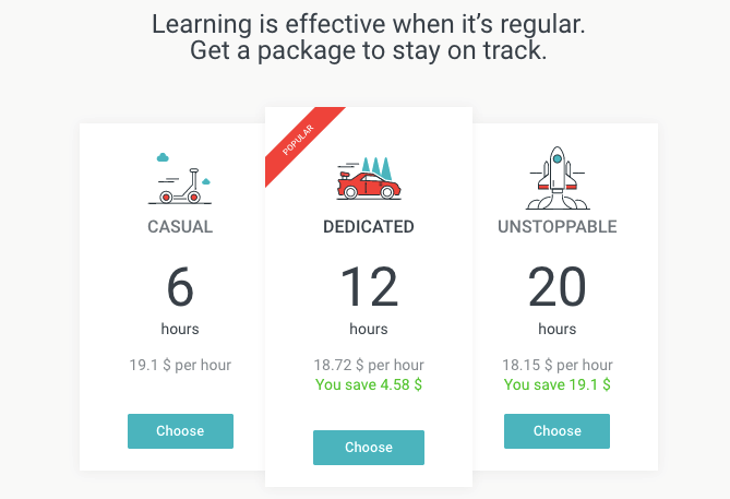 - Les cours sont de 50 minutes. Un bon choix pour l’attention, mais ne pas comparer avec les prix d’un cours d’une heure…