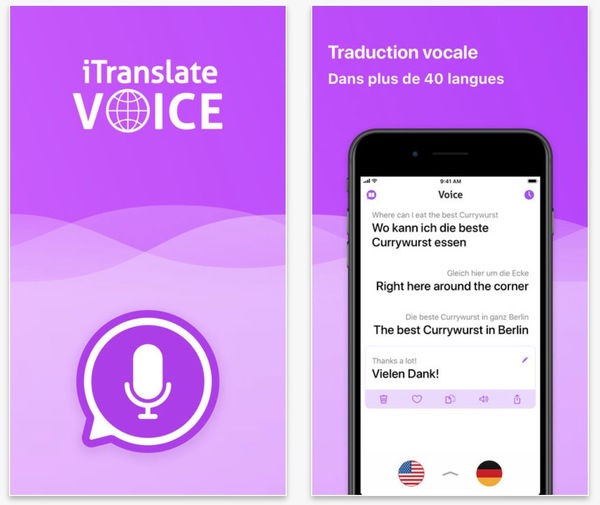 Toutes les applications de traduction vocale, voir texte, se ressemblent et proposent souvent les mĂȘmes fonctions payantes avec le hors ligne, l’absence de pub, le nombre illimitĂ© de traductions, un widget souvent anecdotique… De trĂšs grandes similitudes mĂȘme dans les noms comme le concurrent Itranslate voice…