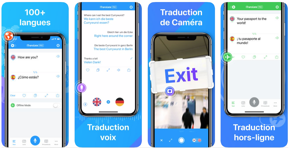 Itranslate, au logo type standard mappemonde, est une suite d’applications de traduction instantanĂ©e texte et vocale. Elle appartient Ă la famille en croissance exponentielle des « apps » pour se passer d’apprendre une langue et rendre de grands services en voyage ou pour converser avec des Ă©trangers. Ses concepteurs germanophones, une fois de plus, montrent l’avance et l’intĂ©rĂȘt pour la traduction de cette zone linguistique europĂ©enne et exportatrice qui a vu la naissance de Babbel et de Linguee…