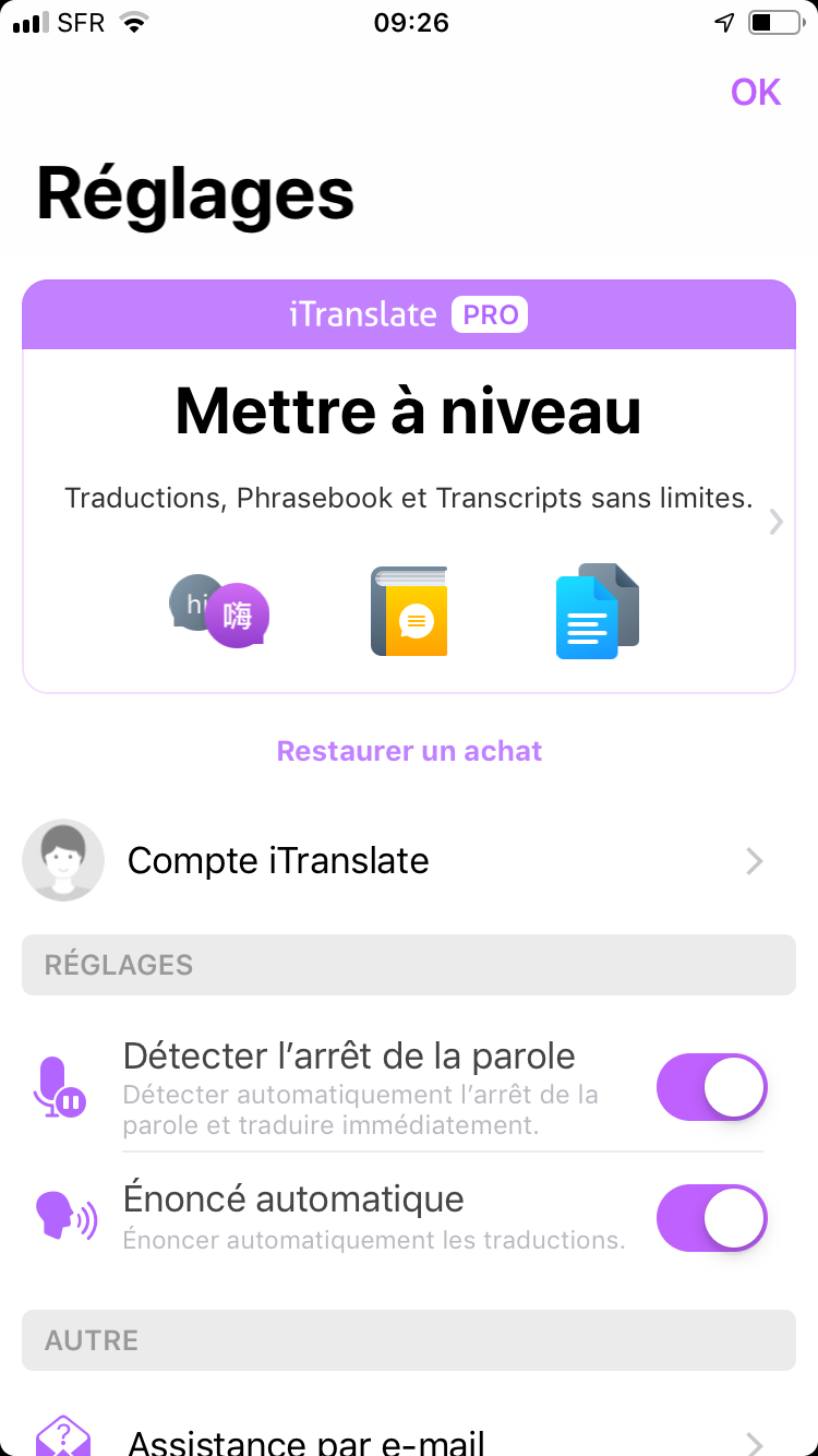 Abonnement iTranslate