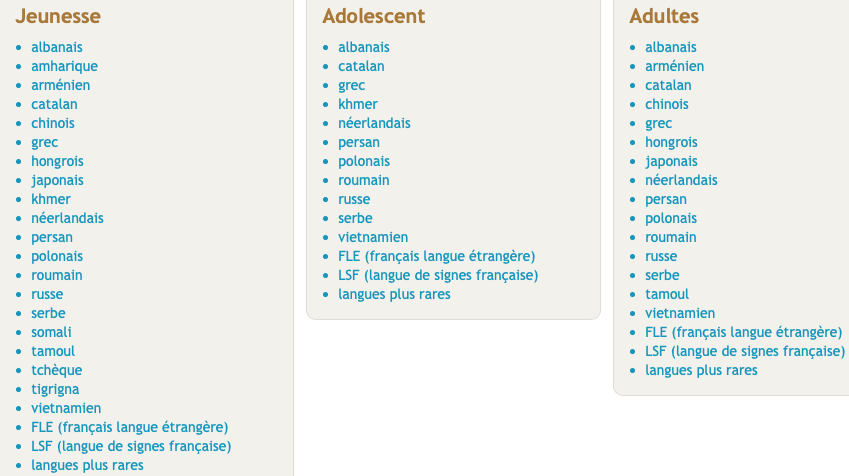 Les onglets langues donnent aussi tout de suite le ton. On vise le monde des langues au pluriel et non pas le couloir réducteur habituel de l’anglais…