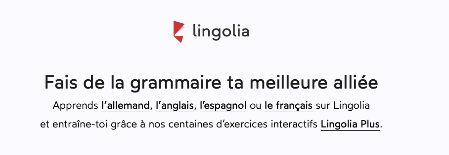 Lingolia vous propose des cours pour différentes langues. La grammaire est son motto!