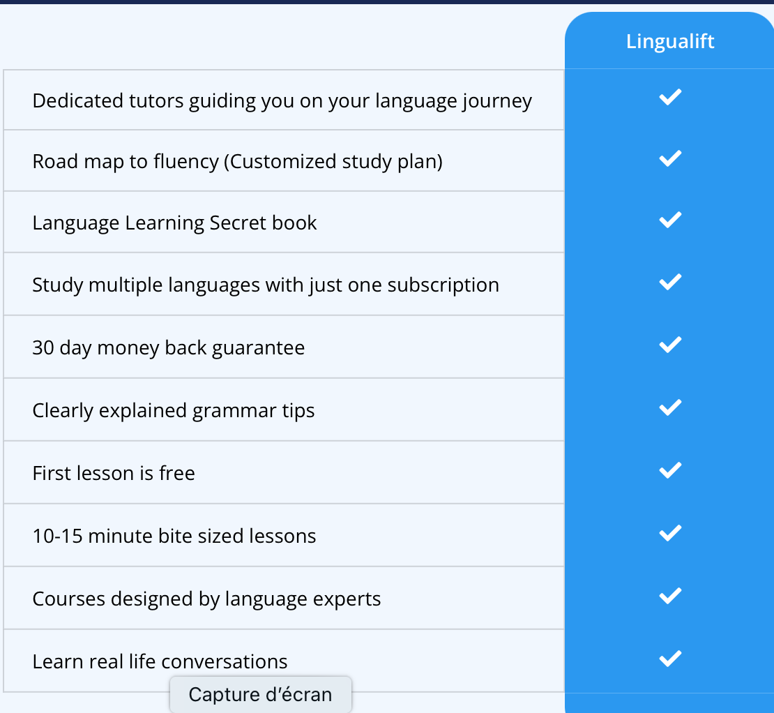 Un programme pédagogique est proposé où la grammaire n’est pas en reste. Une autre spécificité de Lingualift qui ne l’esquive pas comme beaucoup !