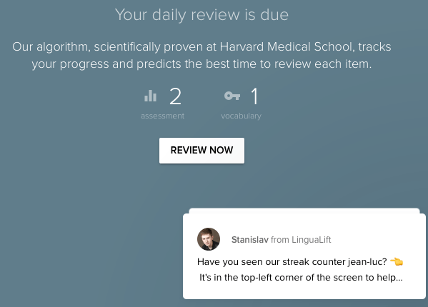 Des leçons courtes, variés, bourrées d’informations et d’aides qui ne lasseront pas. Un grand mérite pour cette appli pour combattre la lassitude de la répétition. La découverte culturelle omniprésente booste l’apprentissage et rend plus intelligent 😉