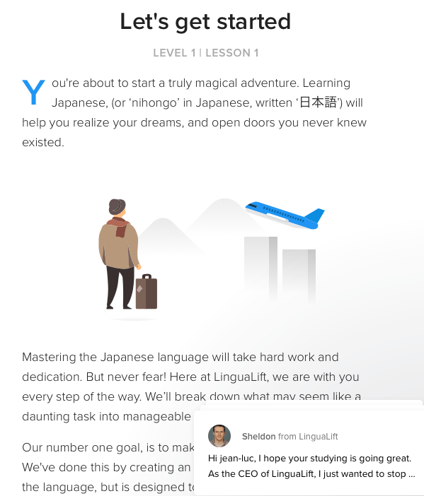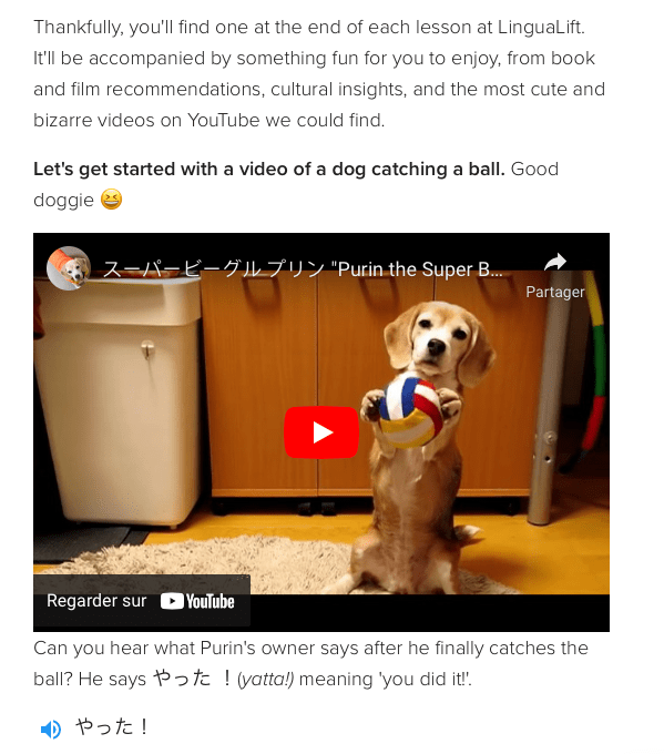 Alors que j’aime bien étudier différentes langues (chinois, hindi, coréen…), je n’ai jamais été attiré par le japonais (et le Japon) mais l’essai de cette langue avec Lingualift a changé la donne. C’est la principale qualité du site, réussir à faire aimer l’apprentissage d’une langue pas évidente et pas attirante pour certains !