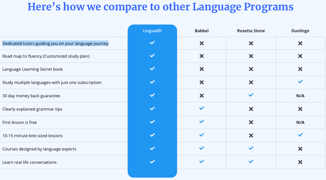 Au-delà du marketing « learn at the light of speed » et « des experts de Stanford, Harvard et Oxford », « near native standard »… Il se caractérise par la proposition de langues réputées difficiles ; le russe, japonais et hébreu. Là où d’autres se ruent sur le marché de masse de l’anglais ou de l’espagnol, ils s’attaquent à des langues plus complexes à enseigner et à vendre. Bravo !