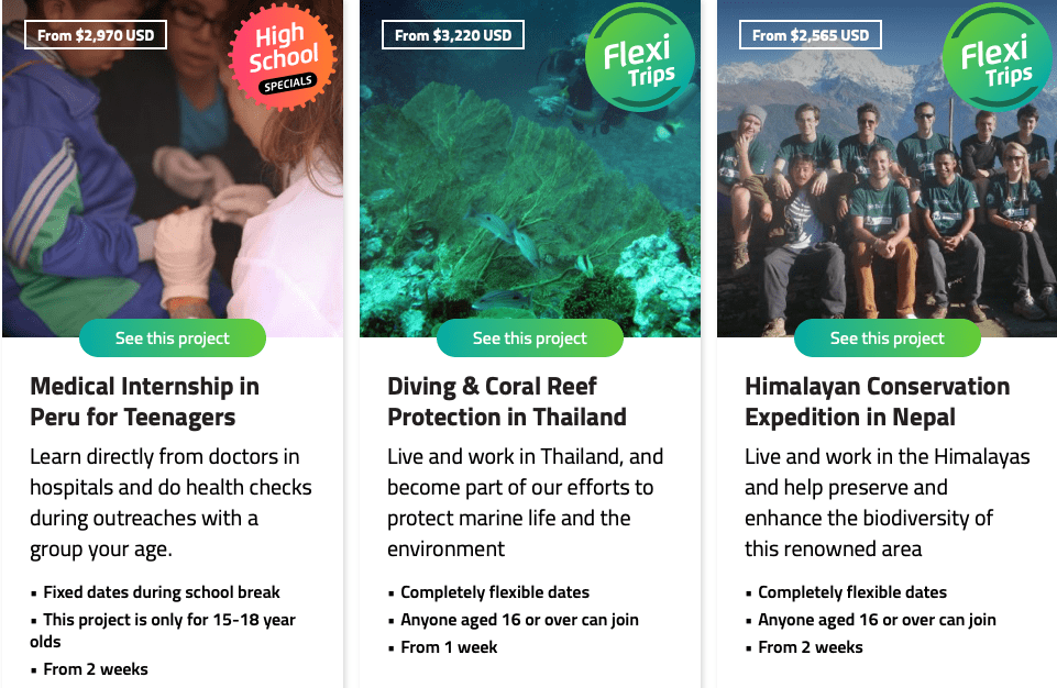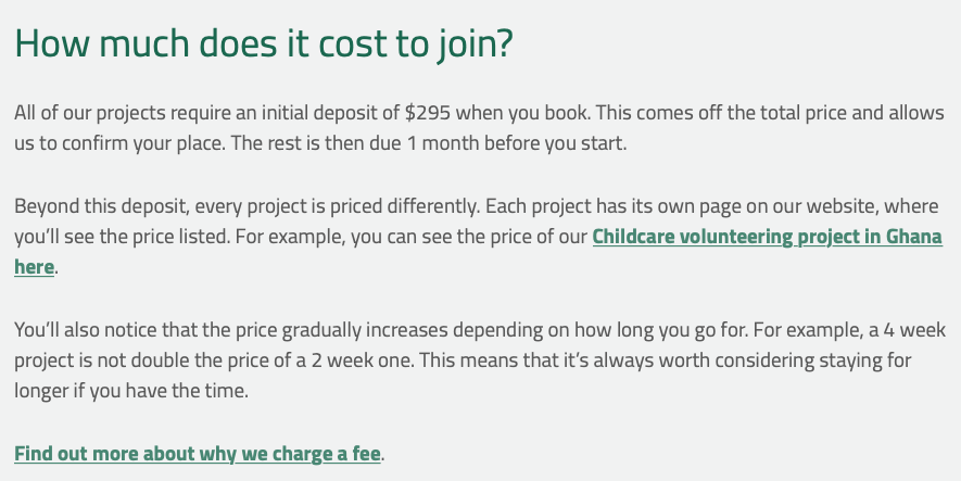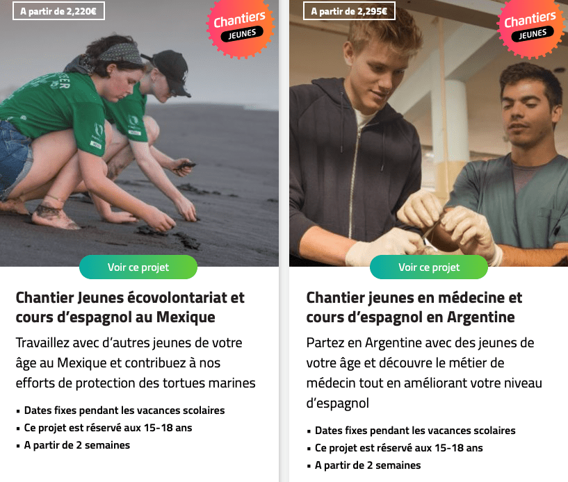 « Volontaires » ne veut pas dire « gratuits » ! On retrouvera ici des prix du marchĂ© pour des sĂ©jours pas vraiment touristiques, mais intelligents. Ils ne comprennent pas les vols, mais de nombreux services dont ceux de formation…