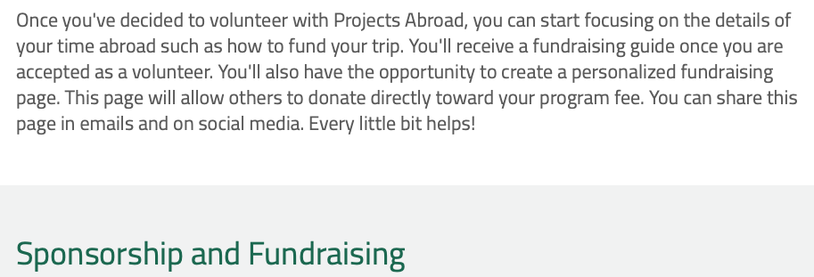 Pour rĂ©pondre aux coĂ»ts d’un sĂ©jour, le site propose un guide d’aides et une page en ligne pour pouvoir lever des fonds et ĂȘtre sponsorisĂ© dans un esprit trĂšs « amĂ©ricains ». Le site français est d’ailleurs beaucoup moins disert sur le sujet (quid de la page perso en ligne de levĂ©e de fonds?)… mais se rattrape avec le PDF du guide.