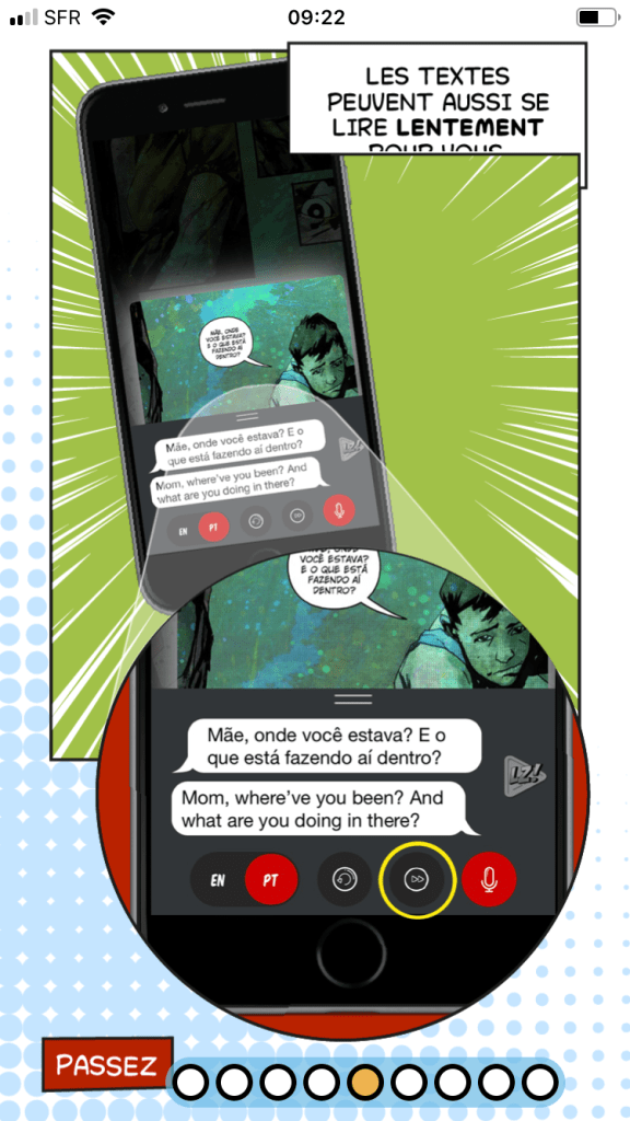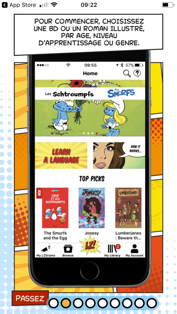 Lire une bande dessinĂ©e sur son mobile tout en Ă©coutant et réécoutant le texte dans la langue visĂ©e (et avec la traduction), c’est l’astuce de Lingozing. Un vrai bon truc pour franchir la barriĂšre de la langueâŻ!