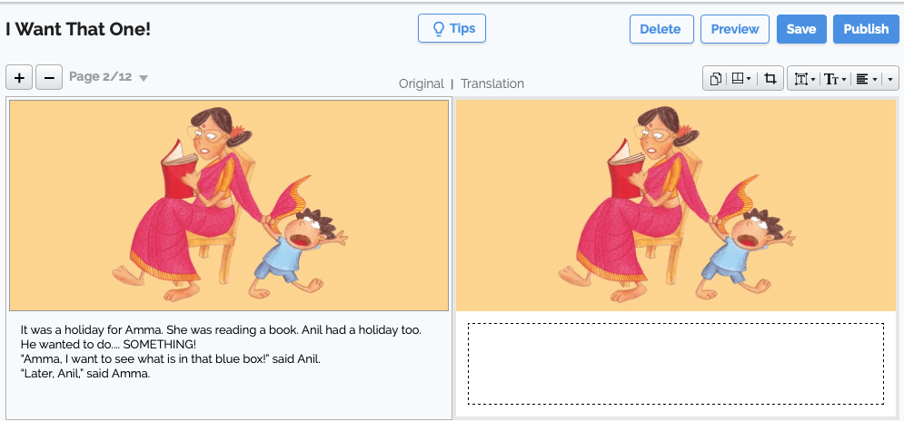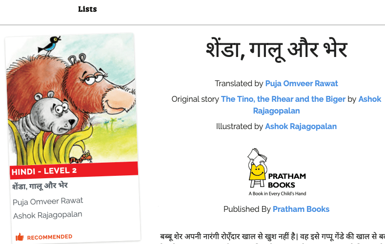 Une ressource au charme inédit permettant de trouver des textes pour ses enfants (tout en révisant ses langues). Un outil simple et accessible qui peut être utilisé par les parents, mais aussi par les enfants avec une petite base de mots d’anglais. Une initiative bénévole d’envergure sans tambour ni trompette médiatiques, mais à portée universelle. L’éditeur indien est une organisation caritative dont voici la genèse :
