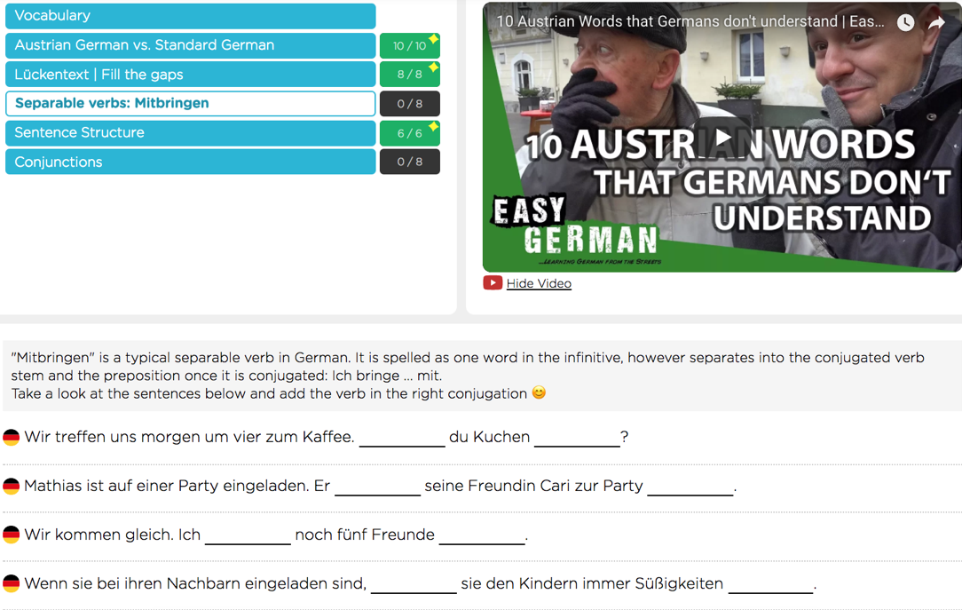 De trĂšs bon outils de travail et qui prĂ©parent assez bien aux voyages linguistiques. L’Ă©coute rĂ©aliste et la dĂ©couverte culturelle in vivo complĂštent avec efficacitĂ© un enseignement plus classique. Un regret, le focus sur des vidĂ©os sans les outils car d’autres sites avec vidĂ©os sont plus structurĂ©s qu’Easy Languages mais ils sont en gĂ©nĂ©ral payants!