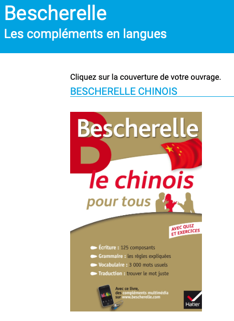 ĂditĂ© par Hatier (collection Bescherelle), le livre « le chinois pour tous » n’est ni un manuel ni une simple grammaire mais un ouvrage composite assez original.