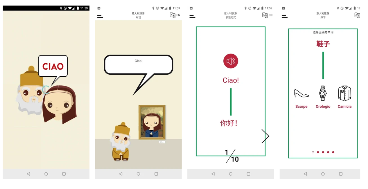 Pour un niveau A1 du cadre europĂ©en, cette application est surtout un prĂ©texte Ă un minivoyage. Ce modĂšle original est une source de motivation intĂ©ressante pour l’apprentissage d’une langue. Presque un jeu, la pĂ©dagogie toute simple utilisĂ©e motive! L’application peut ĂȘtre utilisĂ©e comme divertissement pour des apprenants en particulier dans un avion ou un train. L’aspect dĂ©couverte culturelle (avec ses grands classiques đ revendiquĂ©s, mais surtout la beautĂ© des dessins et du design « made in Italy » sont plaisantes et la dĂ©marquent de beaucoup. Charmant.