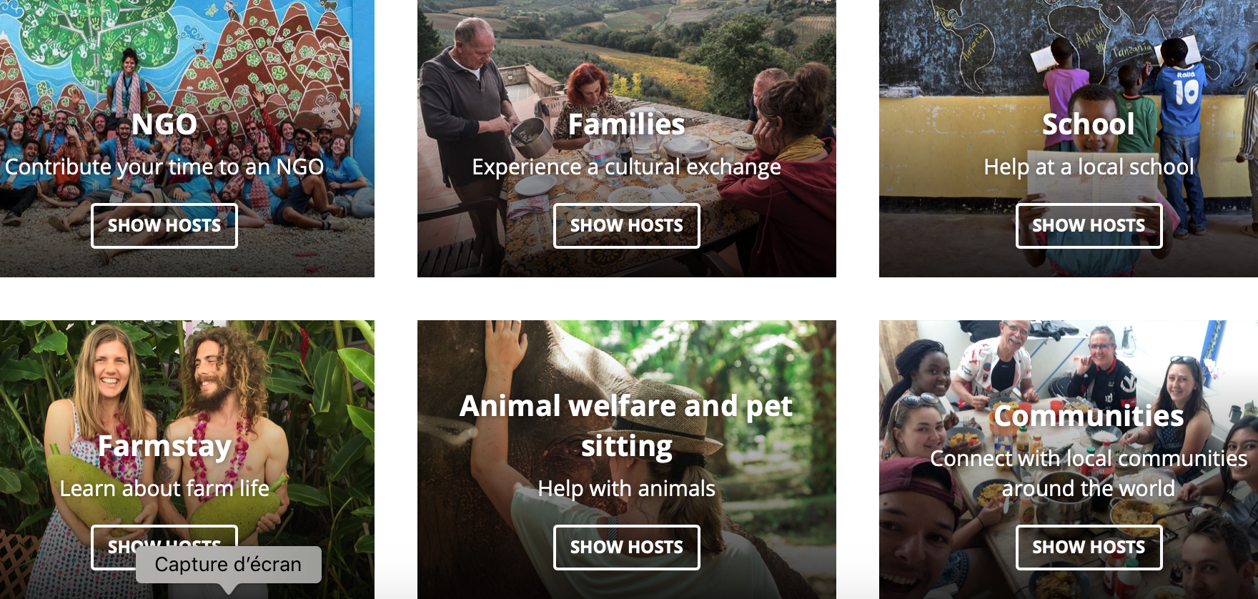 « The world’s leading community for sustainable travel and cultural exchange » est un site web qui permet de trouver et de contacter plus de 36000+ hĂŽtes dans 183 Pays.
