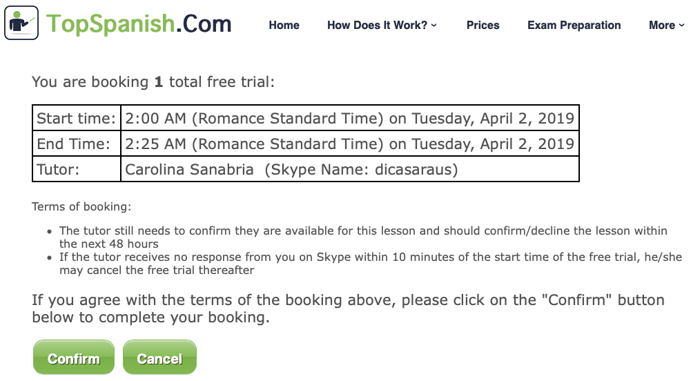 La trĂšs bonne idĂ©e de TopSpanish est le cours rĂ©duit Ă 50 minutes, car une heure rĂ©clame une attention que n’ont pas la plupart des apprenants. 45 minutes d’attention, c’est dĂ©jĂ beaucoup, mais on peut rajouter les 5 minutes de « small talk » đ pour faire 50. La fixation en France sur les heures dĂ©pend peut-ĂȘtre des critĂšres de financements des organismes de la formation (exemple avec Skype qui ne rentre pas dedans…)