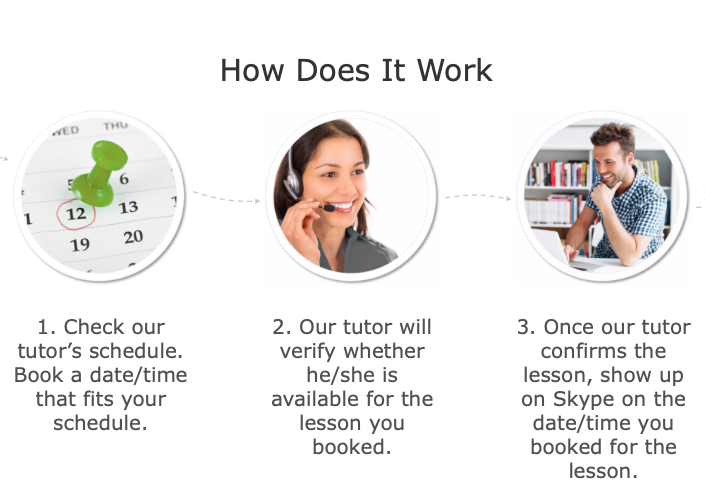 La procĂ©dure est toute simple. Choisir un professeur (c’est vous le patronâŻ!), vĂ©rifier ses disponibilitĂ©s, rĂ©server et, suite Ă la confirmation, contacter le jour et Ă l’heure dite votre prof. Il est prĂ©fĂ©rable toutefois de connaĂźtre l’anglais.