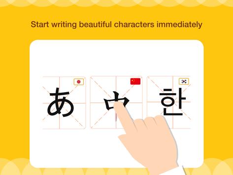 Une application dans l’application oĂč on peut suivre les indications visuelles pour retenir l’ordre de traçage et reproduire les caractĂšres avec le doigt.