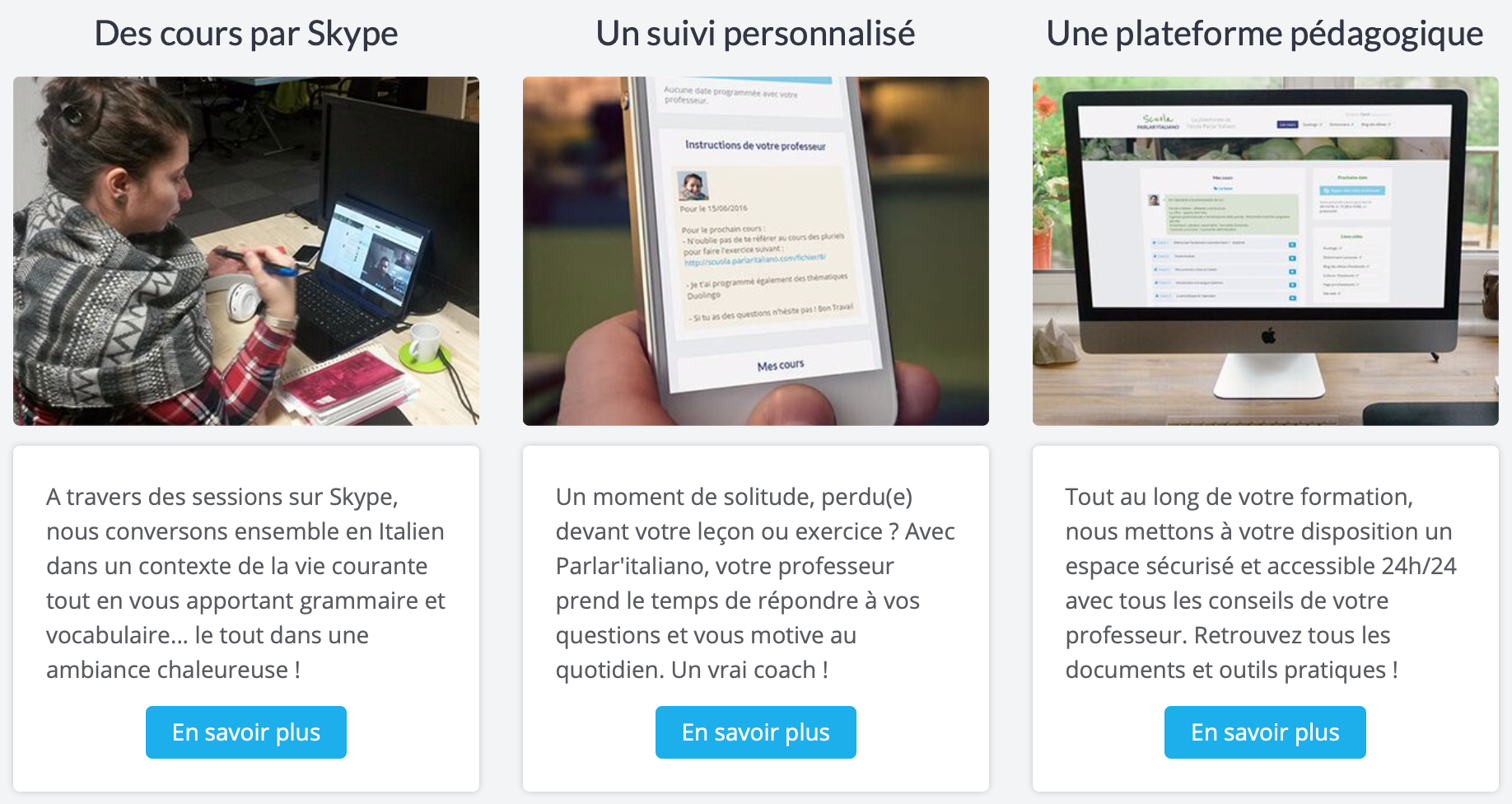 Ces cours ne sont pas de simples entretiens ou cours d’une heure par Skype comme beaucoup, mais un concept pĂ©dagogique qui combine trois Ă©lĂ©ments :