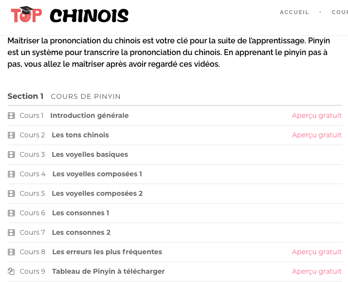 - Les vidéos de découverte et d’apprentissage des bases du mandarin (dont un nombre généreux en accès gratuit)