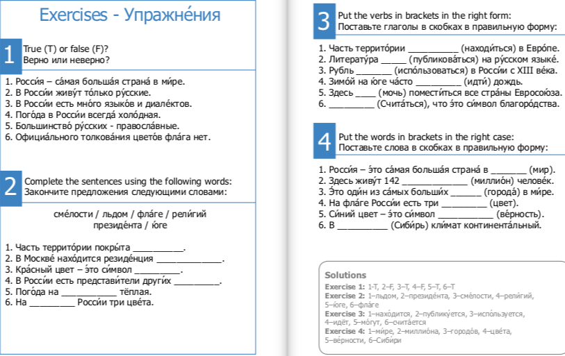 Cet autre livret propose des textes de dĂ©couverte de la Russie et de sa culture et permet d’accĂ©der Ă un registre diffĂ©rent de vocabulaire. On retrouve la structure texte avec traduction + exercice sans lexique de mots nouveau. Comme le prĂ©cĂ©dent livre, cette approche permet un travail de correspondance de traduction bĂ©nĂ©fique Ă l’apprentissage.
