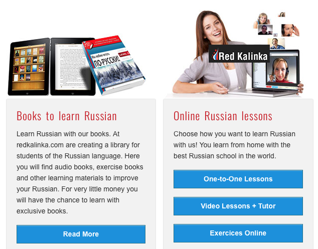 Red Kalinka est une école de langues en ligne basée en Espagne qui nous propose toute une gamme de produits pour apprendre le russe. Des cours vidéos aux livres audio en passant par les cours Skype, des clients du monde entier ont pu apprécier leur qualité ainsi que la réactivité et disponibilité de leur équipe.