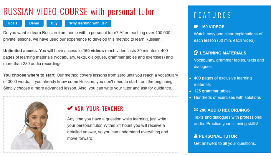Le sistership Kalinka vous propose des vrais trucs pour apprendre une langue comme des distanciels de cours privĂ©s ou un cours complet bĂ©tonnant. Nous ne l’avons pas testĂ© complĂštement, mais la qualitĂ© de Russianforfree laisse dĂ©jĂ augurer d’un trĂšs bon produit (la qualitĂ© est aussi dans la simplicitĂ© et la progressivitĂ© bien calculĂ©e).