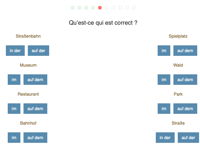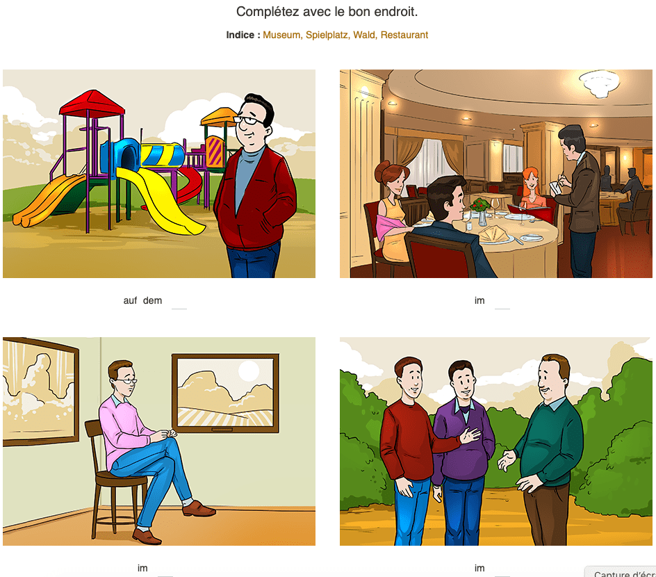 Il est important avec ces sites de bien choisir son niveau, car on est ici dans le travail pas dans le « fastoche amusant pour encourager Ă s’abonner ». Commencez donc par un plutĂŽt facile pour voir car, mĂȘme si le design est simple et les exercices agrĂ©ablement prĂ©sentĂ©s, la rigueur est de mise et le niveau peut ĂȘtre relevĂ© en particulier avec la grammaire. Gros dĂ©calage Ă prĂ©voir avec les applications « mainstream » dont les publicitĂ©s inondent le web…