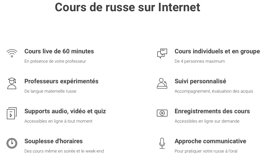 Passer de l’Ă©tude Ă la pratique, c’est souvent un grand moment de solitude et un blocage majeur. Une formule originale permet de passer ce cap en en groupe pour ĂȘtre moins intimidant et bĂ©nĂ©ficier d’un tarif intĂ©ressant, Le russe live, club de conversation en ligne.