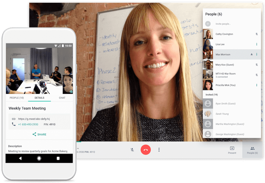 L’outil utilisĂ© est Google Meet, la version professionnelle de Hangouts qui est devenue depuis accessible Ă tous. Des vues d’Ă©cran de l’outil :