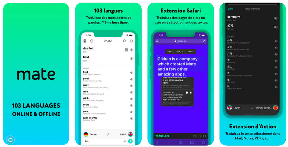 âą FonctionnalitĂ© Appuyez pour traduire : copiez du texte dans une application et la traduction s’affiche automatiquement.