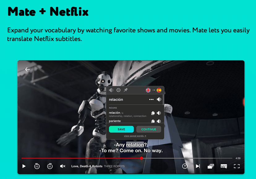 Il en existe de multiples parfois liĂ©s Ă des Ă©diteurs comme Netflix. Ils ont l’avantage d’offrir des fonctions pratiques pour apprendre et vont au-dĂ©lĂ de la simple traduction..