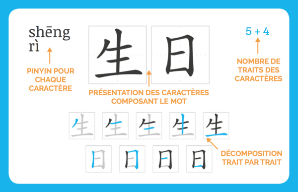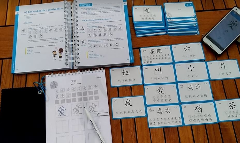 Ces cartes sont un formidable outil de rĂ©vision avec toutes les composantes nĂ©cessaires (phonĂ©tique, traçage, traduction, caractĂšre) et la « modularitĂ© » d’un jeu de cartes. Le gadget des couleurs de tons d’autres produits en vente n’est pas utilisĂ© ici et c’est tant mieuxâŻ!