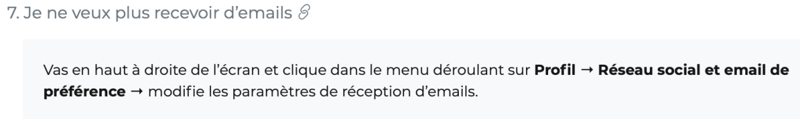 Le site communique… Chaque opĂ©ration fait l’objet d’un message de confirmation. D’autres signalent l’approche d’un cours ou incitent Ă l’achat de cours si rien n’est crĂ©ditĂ© ou Ă Ă©crire par exemple, un commentaire. Les messages peuvent se retrouver dans votre hub (beaucoup plus pratique) mais sont rapidement envahissants dans votre boĂźte aux lettresâŻ! Un rĂ©glage est accessible pour en limiter le nombre (Ă faire d’urgence). Partager avec les rĂ©seaux sociaux, un grand classique aussi prĂ©sent.
