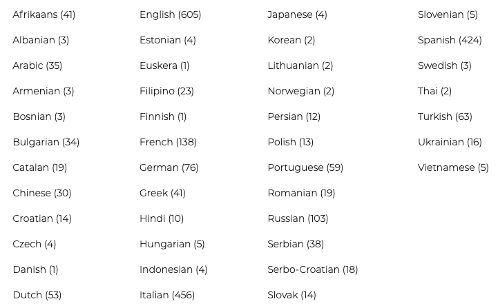 - le nombre de langues disponibles