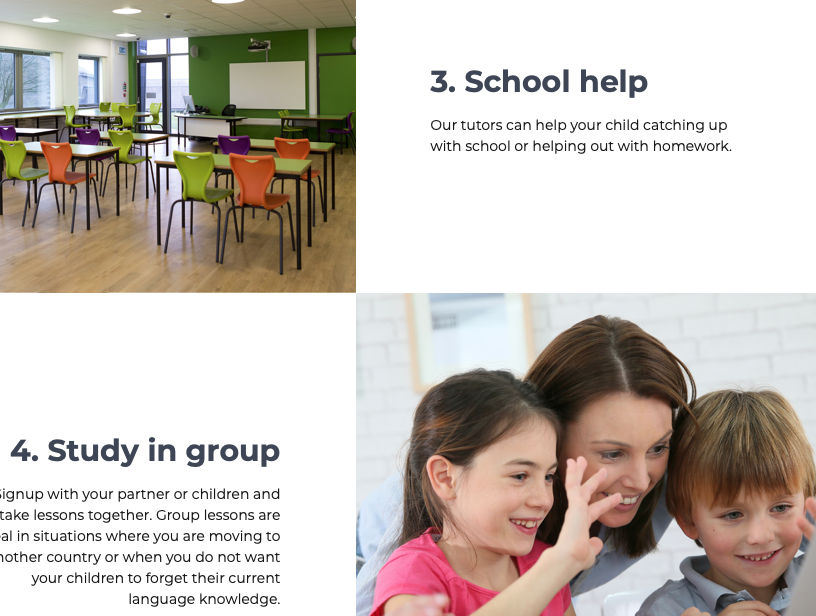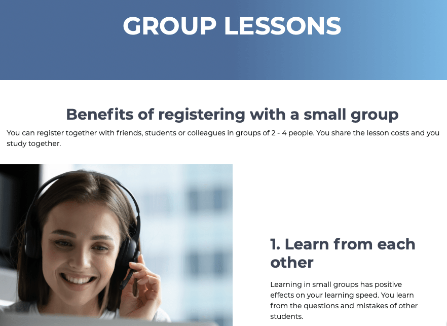 Une entreprise européenne et un site sérieux qui respire le professionnalisme, mais avec un contact sympathique. Le principe est de proposer un espace en ligne pour trouver et acheter des cours en ligne (par skype, ou tout autre logiciel), mettant ainsi en relation les étudiants et professeurs.