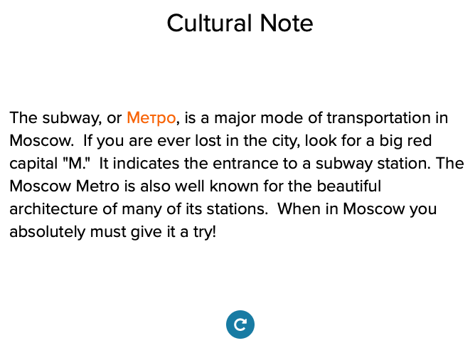 Les notes de grammaires ou culturelles sont remarquables de simplicitĂ©. Elles introduisent en douceur des Ă©lĂ©ments de grammaire parfois ardus ou expliquent un contexte culturel d’usage, un truc le plus souvent absent de ce type d’application. Un complĂ©ment prĂ©cieux mĂȘme s’il n’Ă©vitera pas un apport sĂ©rieux en grammaire ailleurs (en particulier pour le russe :-). Les notes sont pointues et excellentes dans le cadre de ce type d’applications⊠Un procĂ©dĂ© didactique est de vous piĂ©ger, mais d’immĂ©diatement vous expliquer la raison de votre erreur. TrĂšs bien fait comme pour cet exemple d’explication pour le russe Ă la grammaire Ă©toffĂ©e :