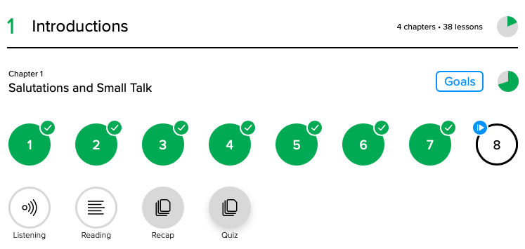 Pour terminer les cycles, des exercices ou des rappels : la conversation du dĂ©but, un vrai « flashcard » de rĂ©vision des mots, une rĂ©capitulation ou un quizz de comprĂ©hension basĂ© sur l’Ă©coute d’une nouvelle conversation. Ils sont nombreux (arrivent automatiquement ou Ă choisir en manuel comme la « recap ») et sont des outils de qualitĂ© pour un travail remarquable de rĂ©pĂ©tition et de mĂ©morisation,. Vous dĂ©couvrirez alors si vous avez bien assimilĂ© le chapitre. Un « review » apparait aussi tout au long de l’apprentissage (icĂŽne noire et ronde avec le nombre de cartes Ă revoir) intĂ©grant les mots et phrases de prĂ©cĂ©dentes leçons (principe de rĂ©pĂ©tition espacĂ©e) d’oĂč l’intĂ©rĂȘt de suivre les chapitres dans l’ordre… Elle peut ĂȘtre longue et demande une concentration maximum (surtout si vous n’utilisez pas ou peu la fonction de dĂ©sĂ©lection des mots connusâŻ!). Faites une pause pour vous prĂ©parer!