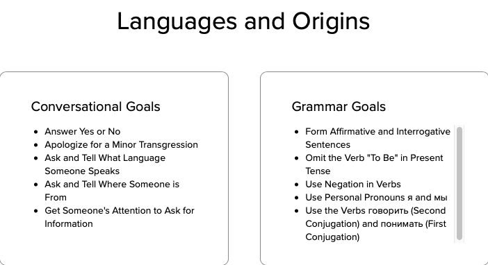- L’absence d’un cours d’alphabet, de prononciation ou d’Ă©criture en particulier pour les langues Ă caractĂšres (il existe par contre des pages d’explications comme pour le japonais ou une vidĂ©o pour le russe dans les ressources